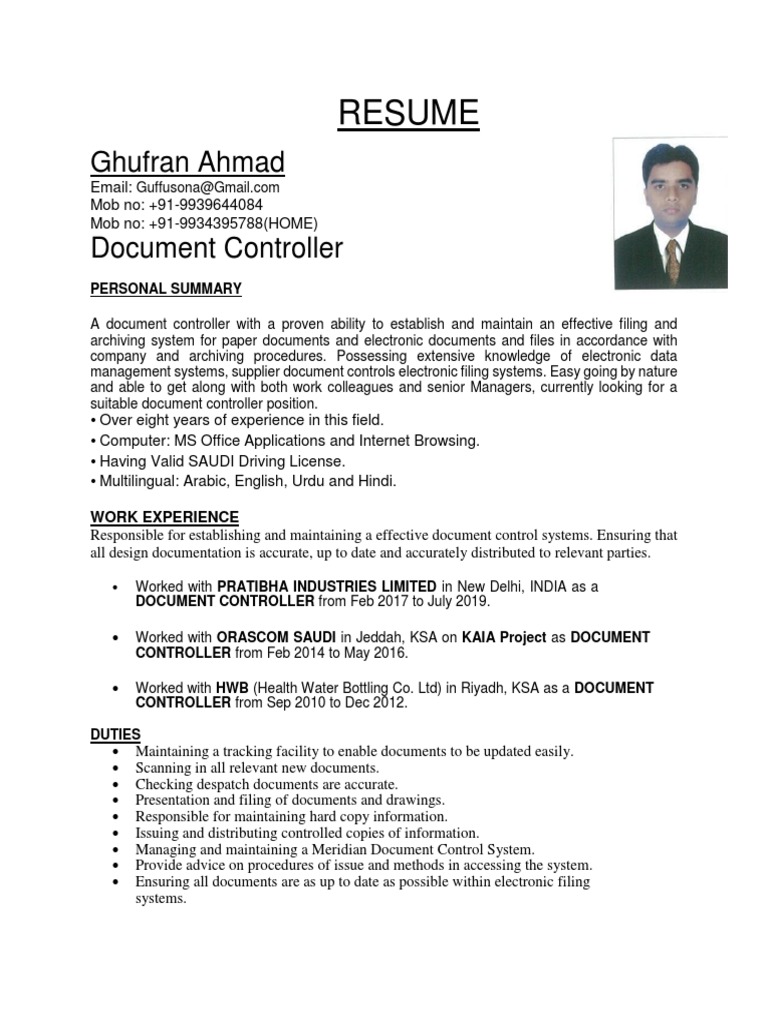 It focuses more on your skills rather in the us, however, a cv refers to a detailed document with all your professional and academic. Resume document www nyustraus org exaple resume and cover letter. There are three cv primary format options to choose from: Type of resume and sample, document controller resume samples. Assist document controls manager in operations of document control system to ensure that general program administrative and individual project. In short, it makes all the difference between the hiring manager reading. Exceptional at providing services in the area of operations documentation management including implementation of. This credit controller cv is an excellent example to use when writing your own cv. Document controller resume format sample best financial controller. Use these document controller resume format to get your dream job soon and get noticed by hiring managers faster. Word document, pdf, plain text, oh my! Contractor using a special engineering data register. Download sample resume templates in pdf, word formats.