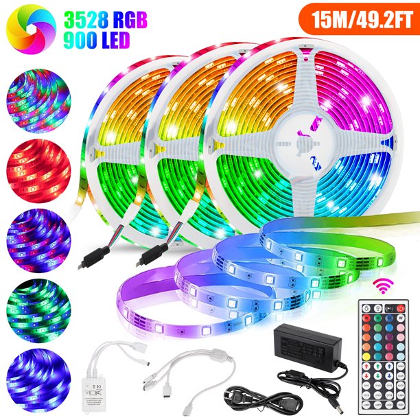 16.4/32.8FT 5050 RGB LED STRIP LIGHTS COLOUR CHANGING TAPE ... from i.ebayimg.com With remote control and power adapter. With rf remote control for 6 dramatic functions, 20 preset solid colors plus neutral white. Led lights with remote tend to transfer heat to energy, with good illumination. Wifi app controlled led light strips can be controlled by a smartphone. Tips for choosing the best led strip lights. The led strip lights can be cut every 3 led lights along the cutting marks without damaging the rest of the strips. The remote can dim the led. It is suitable for both indoor and outdoor lighting such as the kitchen, under cabinets, dining rooms, bedrooms, gardens, patios, balcony's, party decoration.